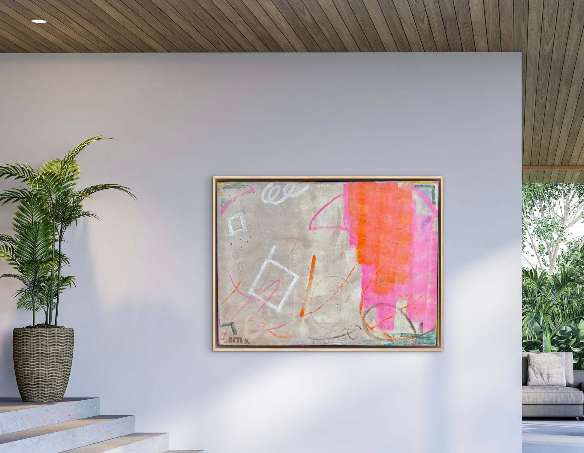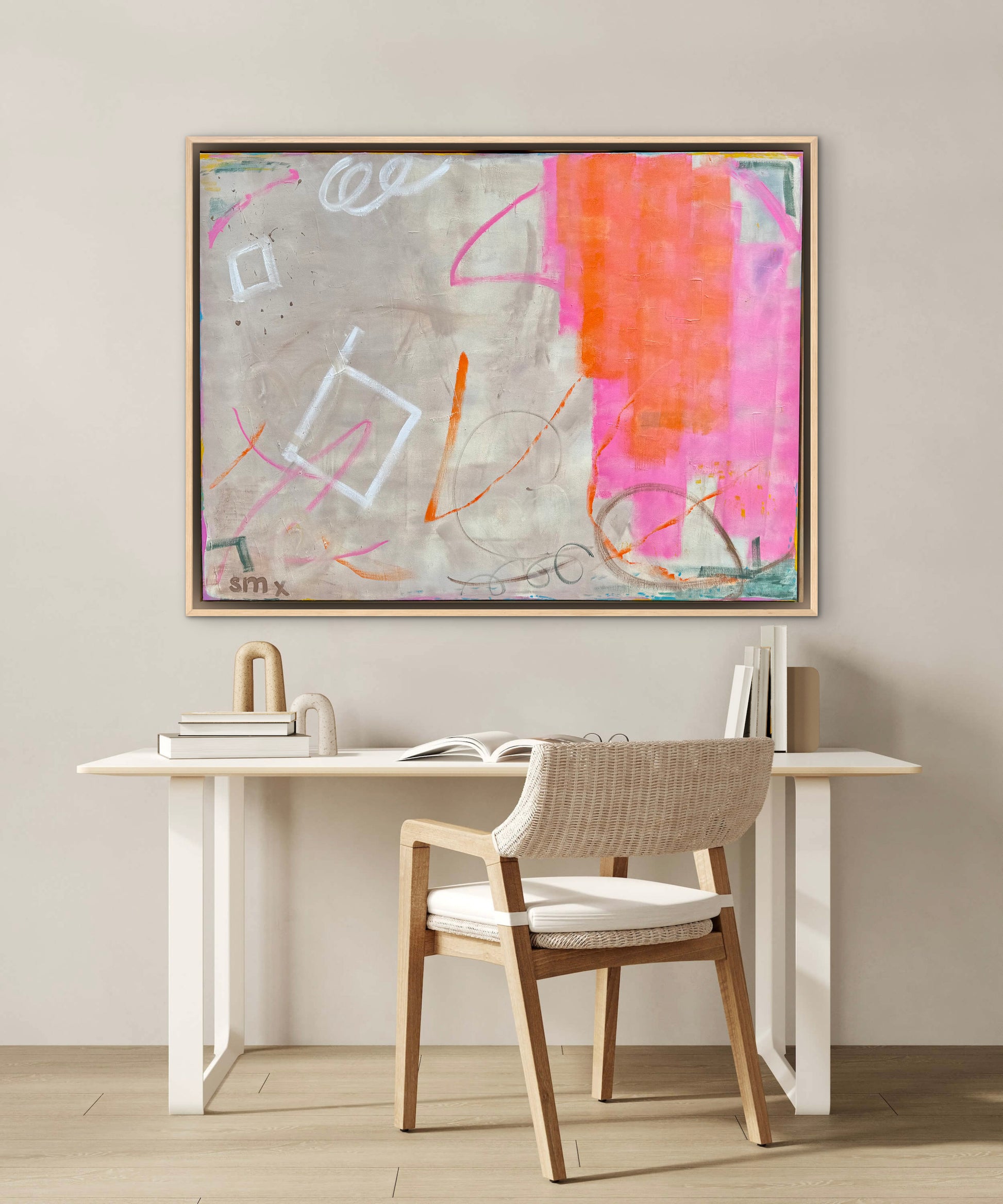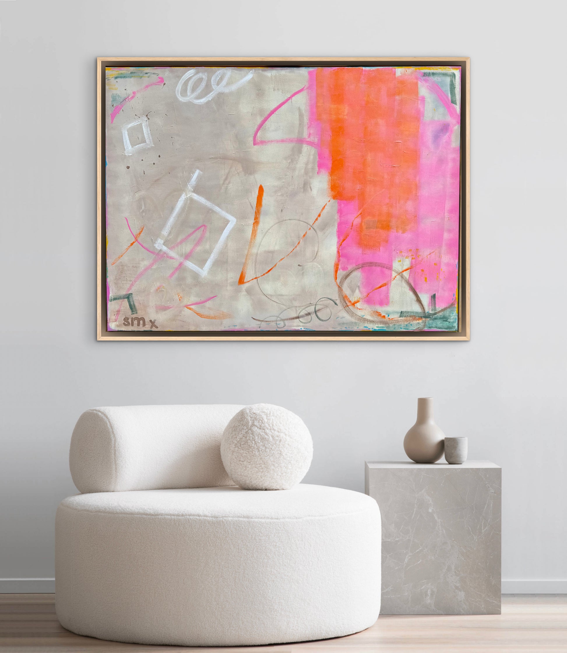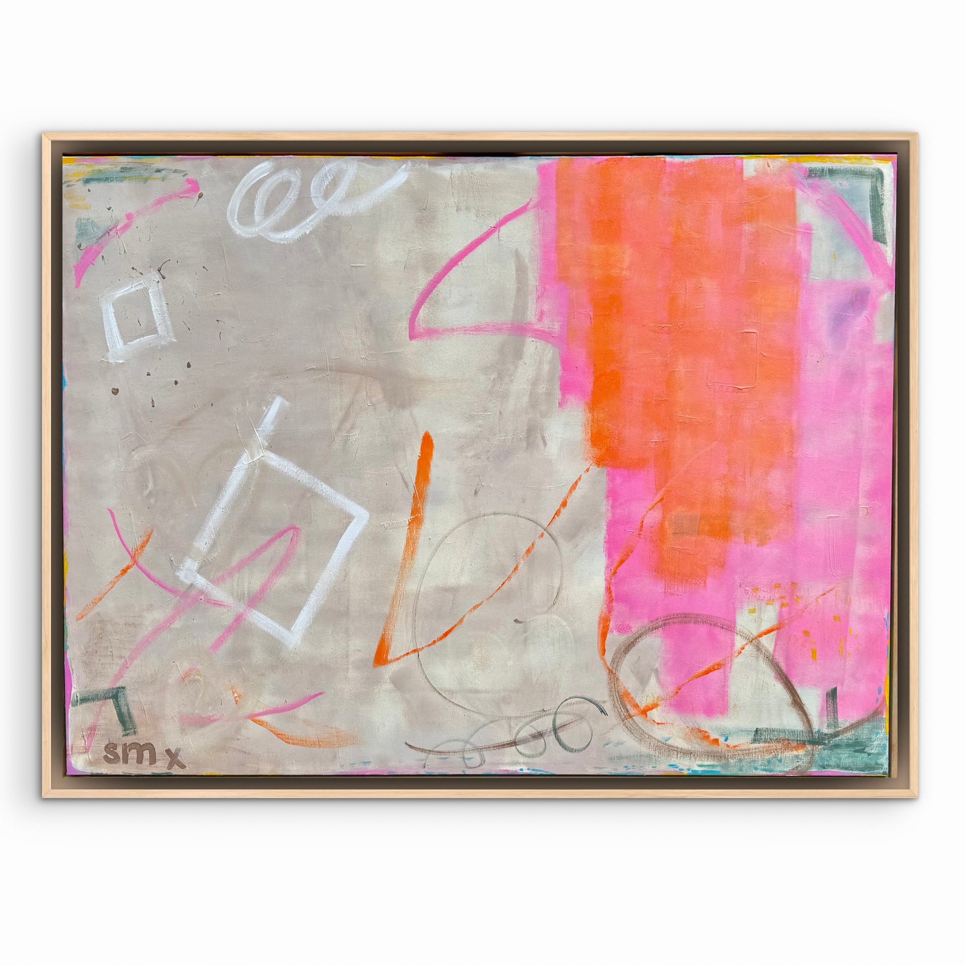 Original acrylic on canvas measuring approximately 95cm x 125cm framed in a gorgeous oak floating frame.