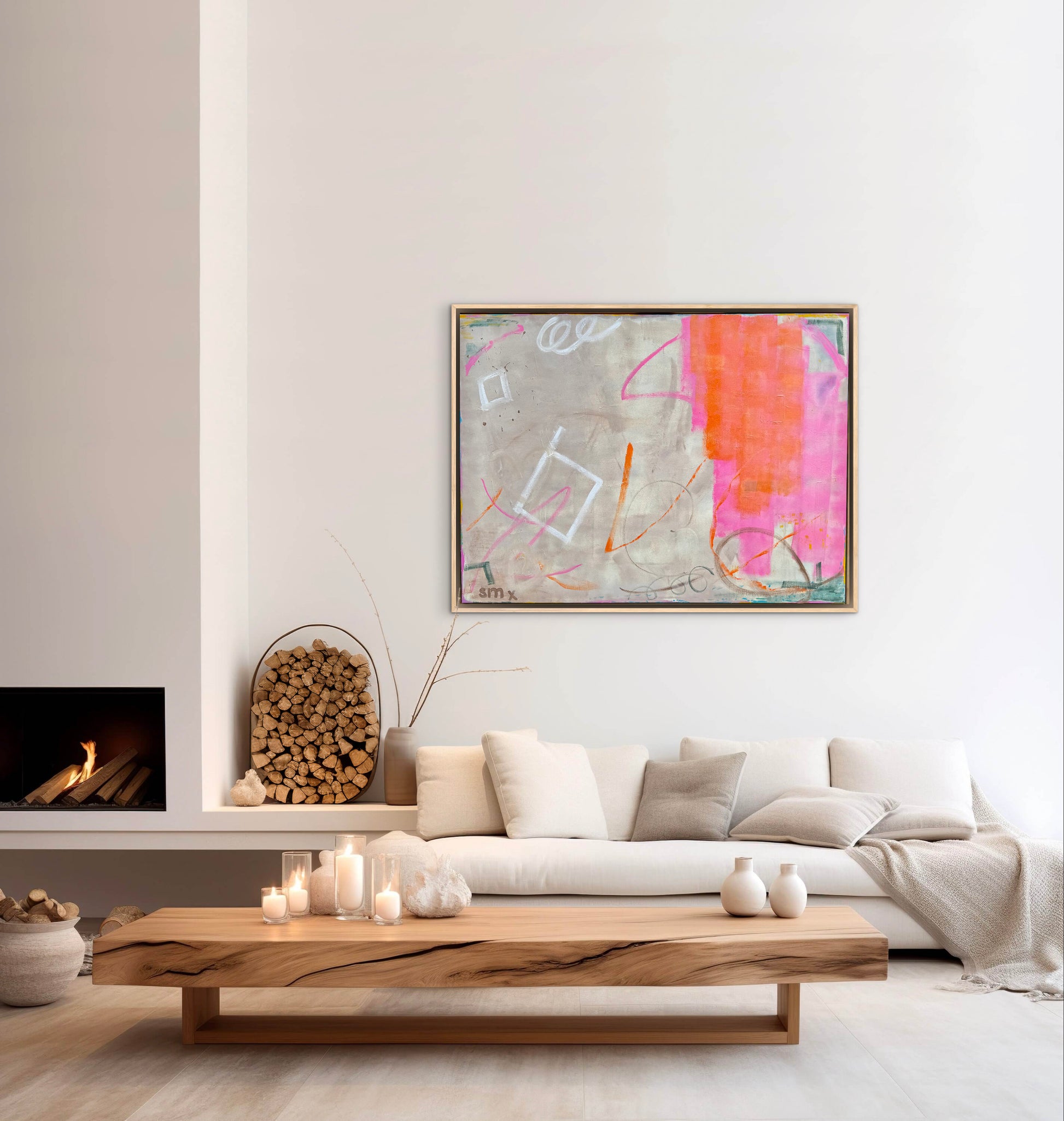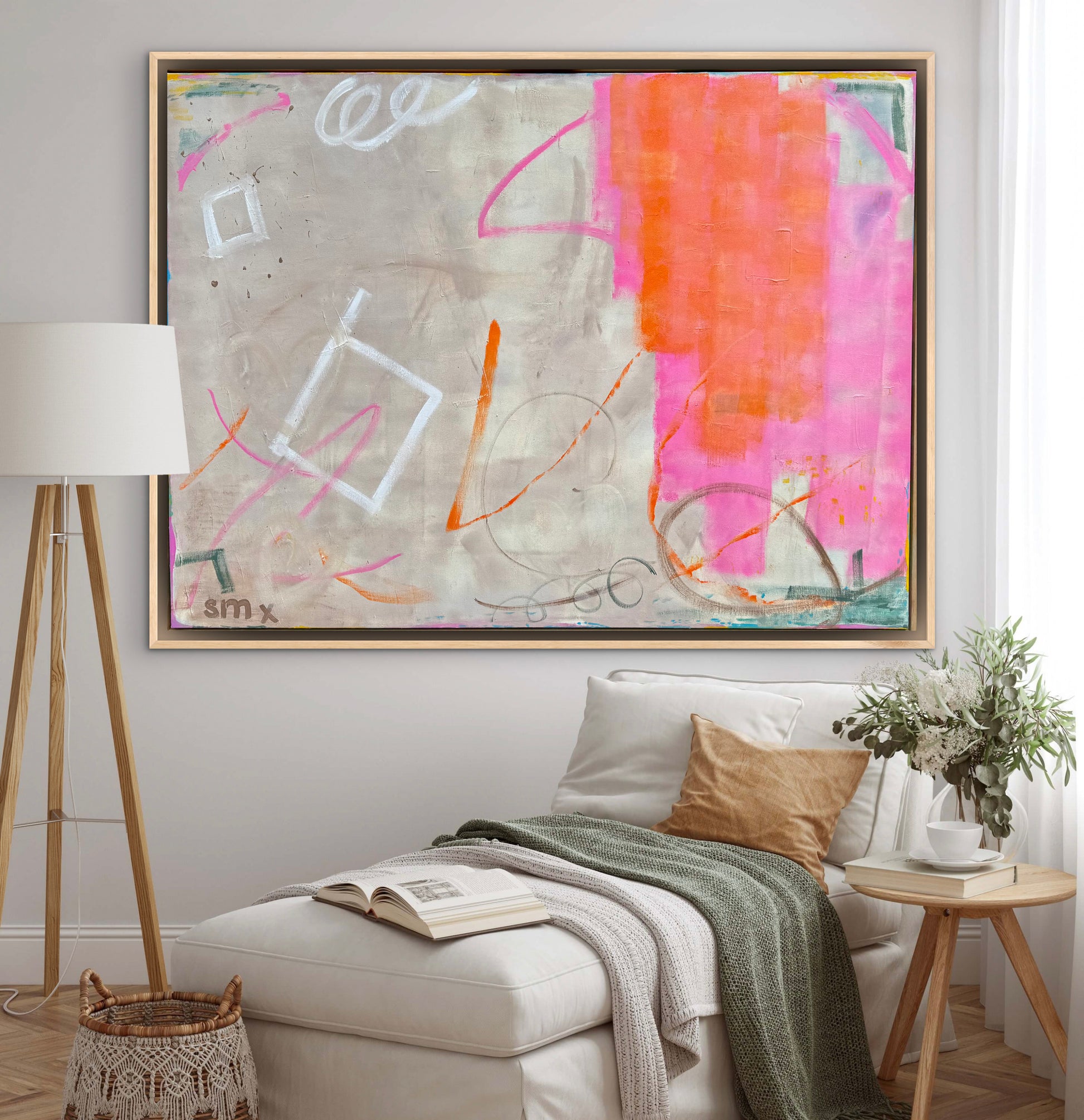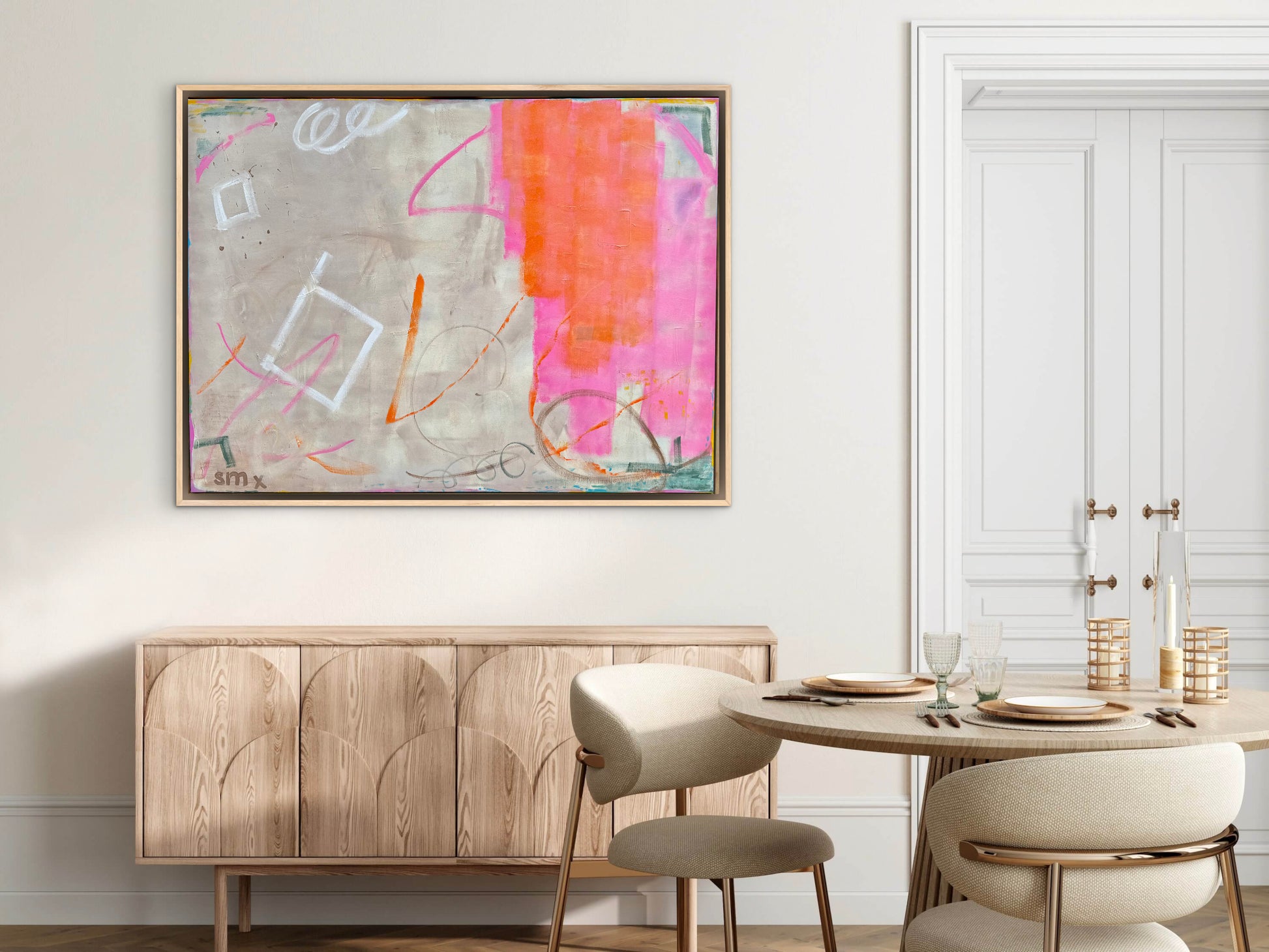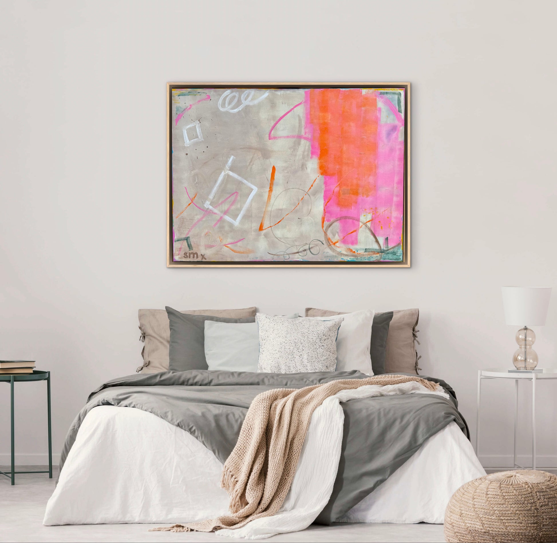 Original acrylic on canvas measuring approximately 95cm x 125cm framed in a gorgeous oak floating frame.